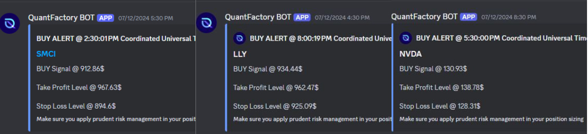 Also, we got some signals on NVDA 0.00%↑, SMCI 0.00%↑ , and LLY 0.00%↑, in our Discord server, coming from our bots.