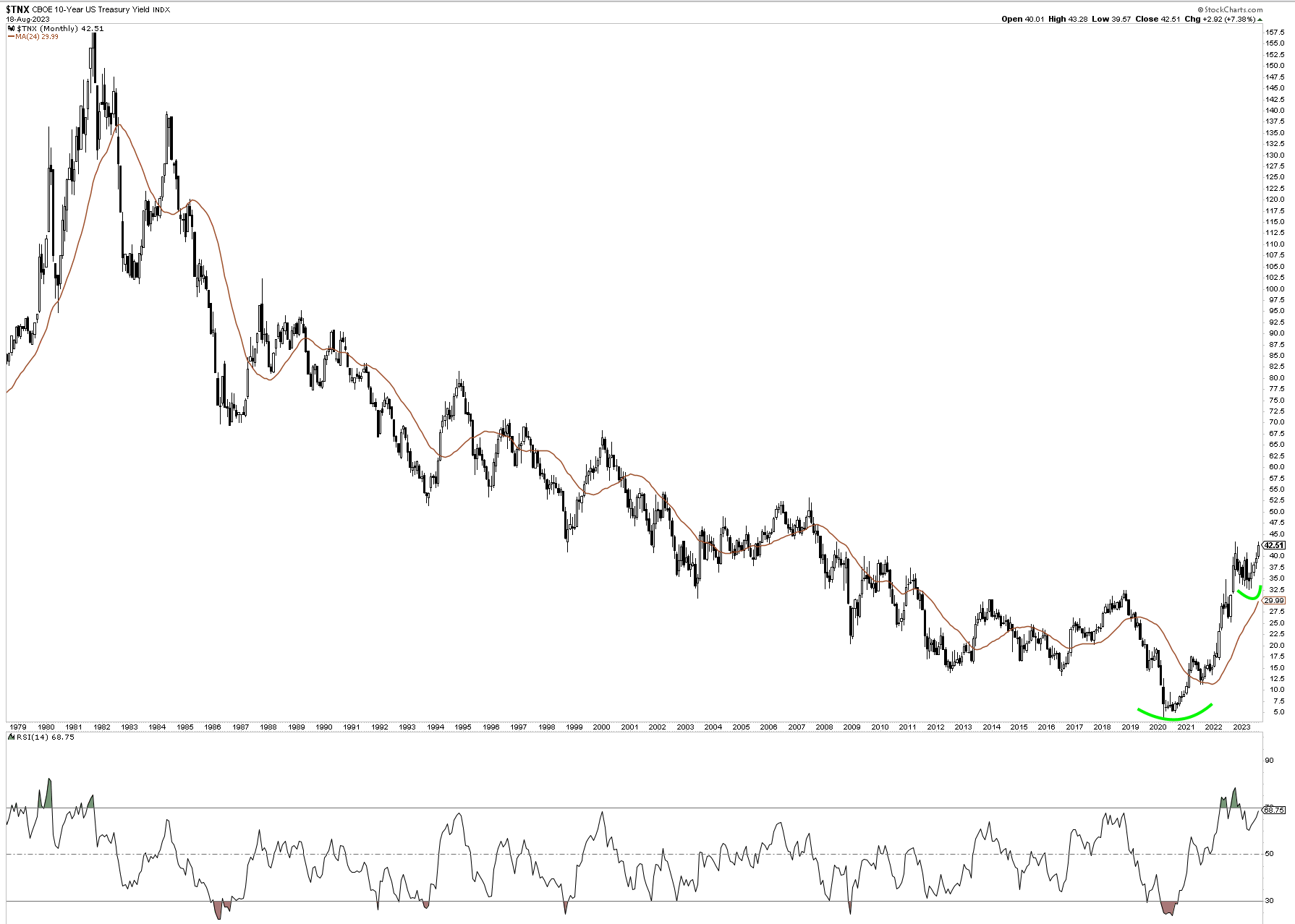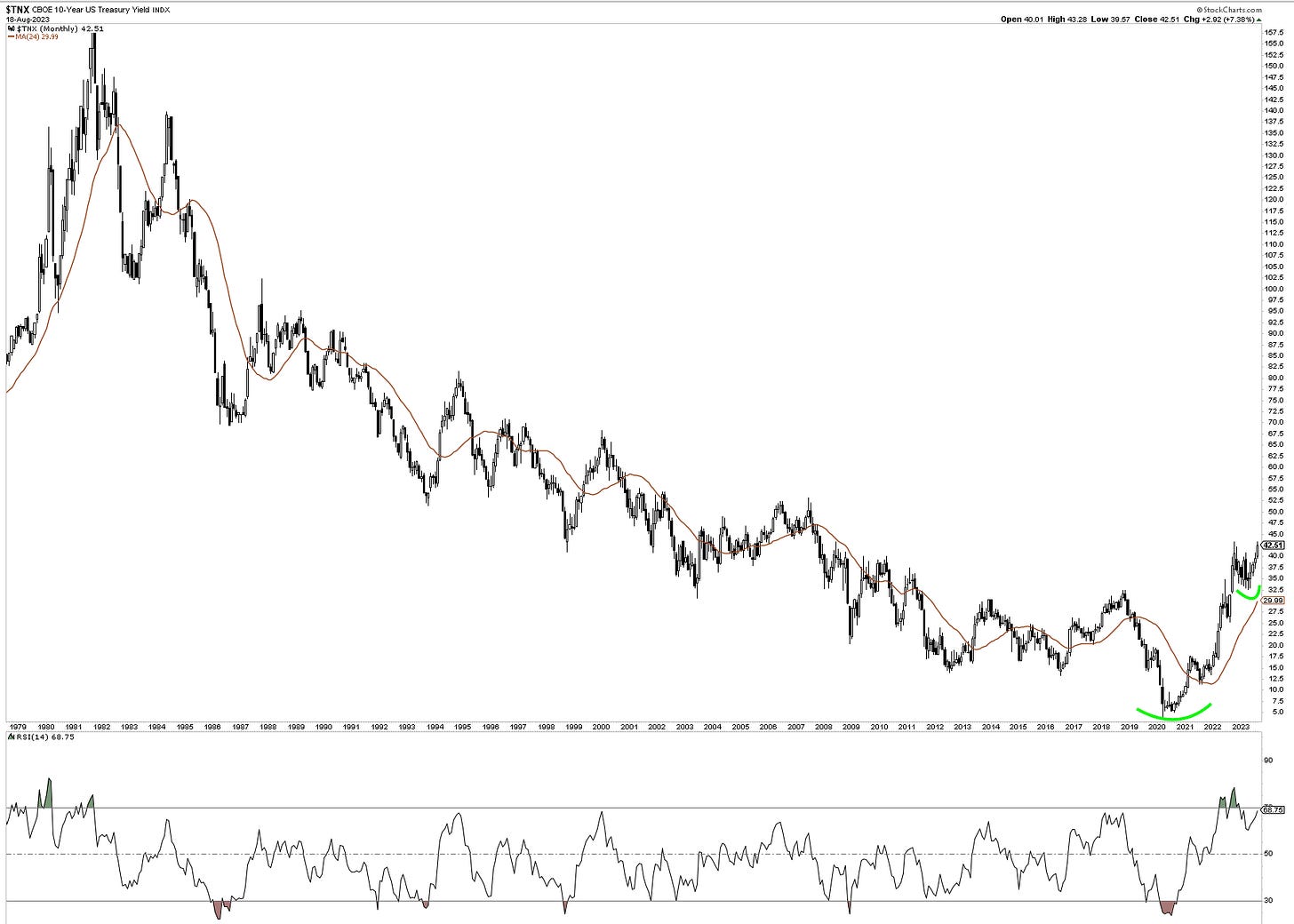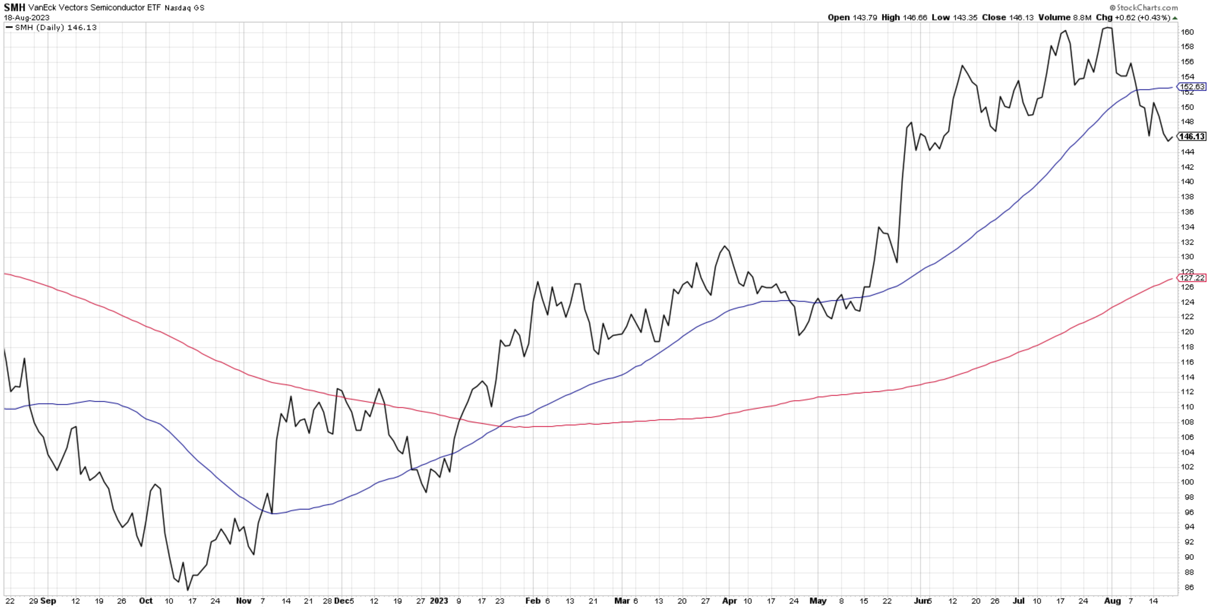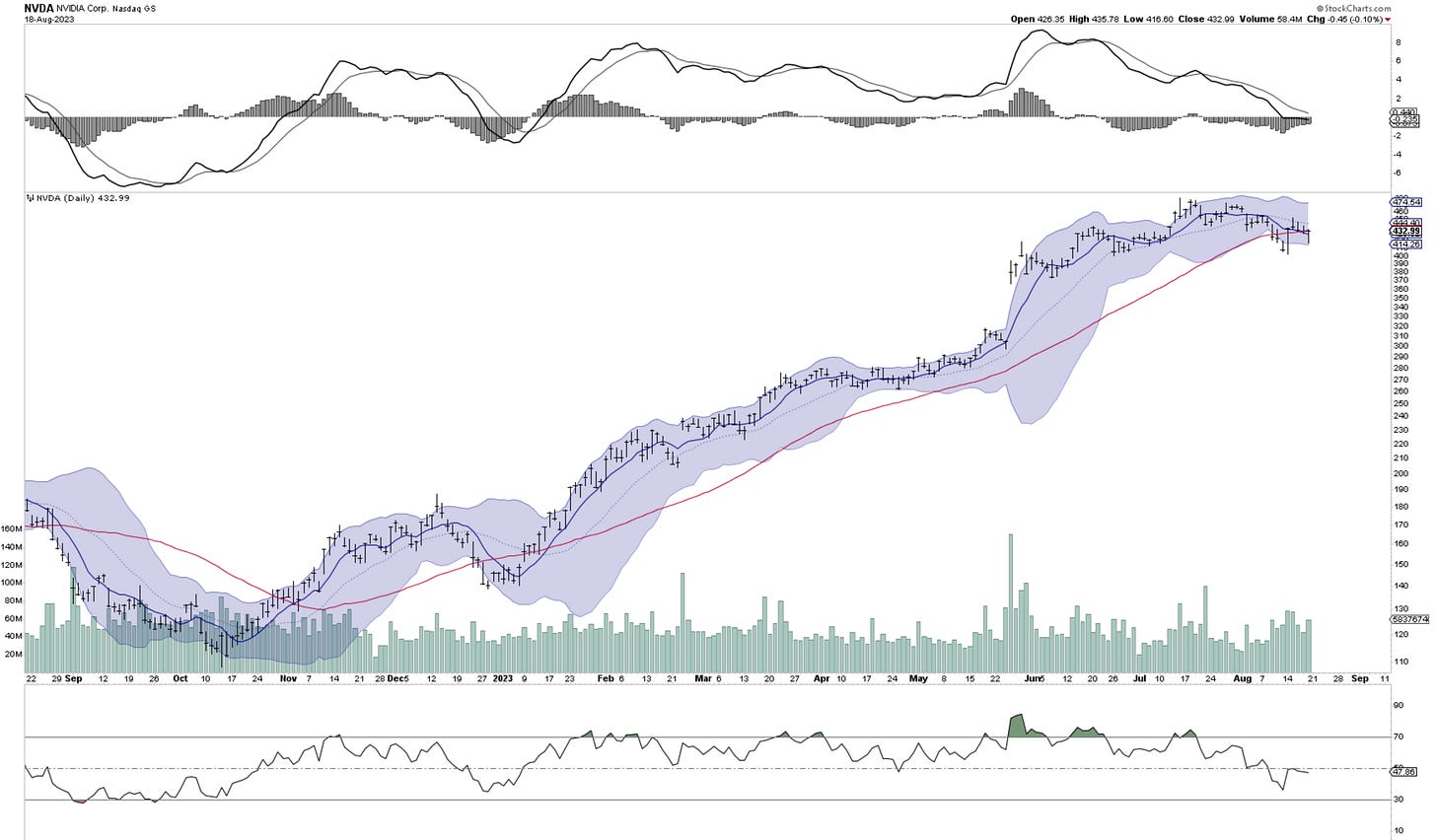 Of course some names have been performing better like LRCX 0.00%↑ and KLAC 0.00%↑ , but most eyes will be on Nvidia’s results this week. Currently the sentiment in NVDA 0.00%↑ is being reset. Looking at it’s chart, it’s RSI recently dipped below 50, came up and then rejected this mark. Throughout it’s remarkable run-up this year, this was the first and only time this has happened, and could signal that earnings might be more of a liquidation than accumulation event.