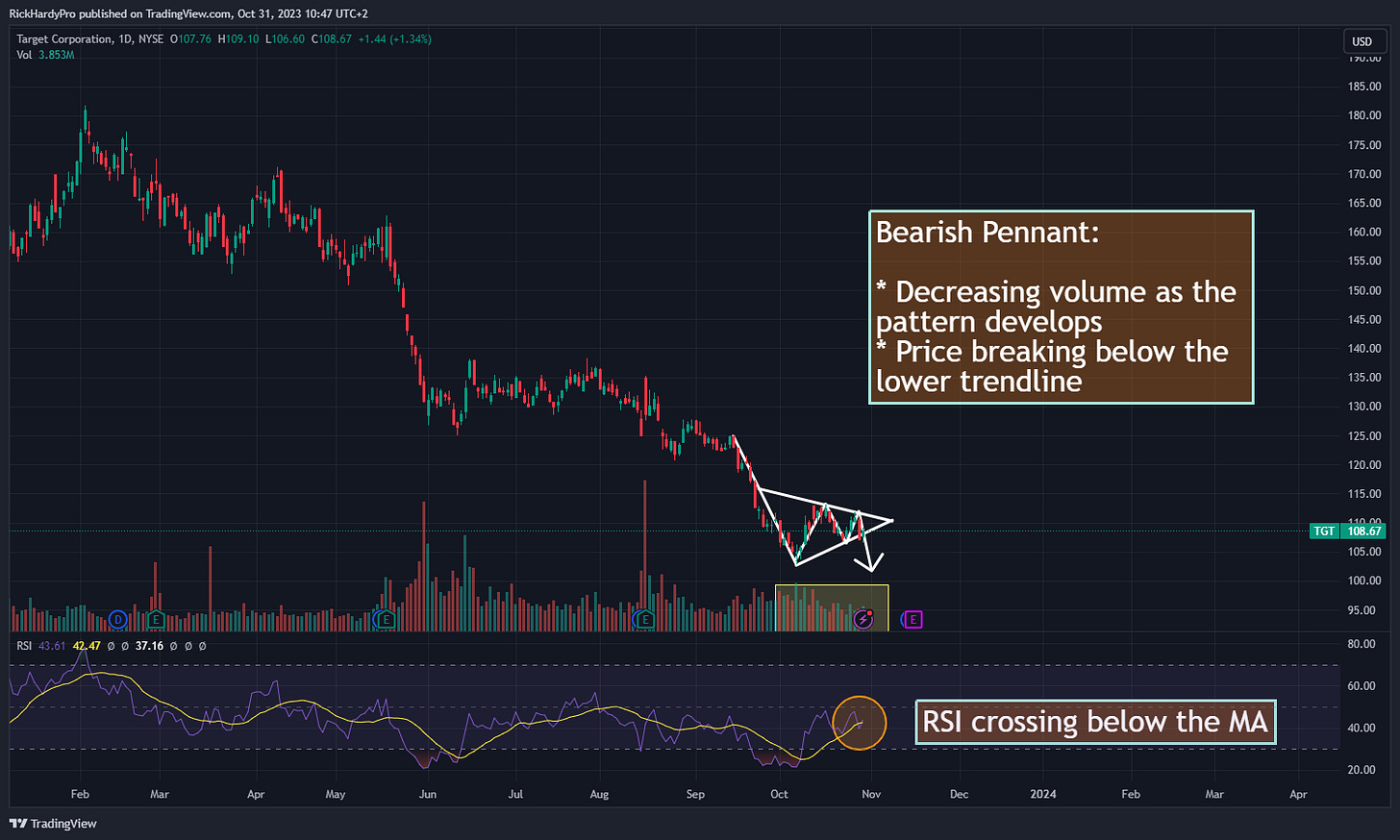 1.) Bearish Pennant on Target TGT 0.00%↑