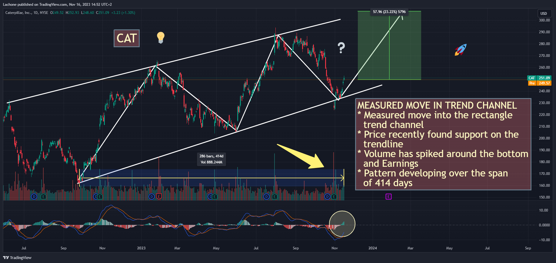 1) Measured Move In Trend Channel Formation On CAT 0.00%↑.