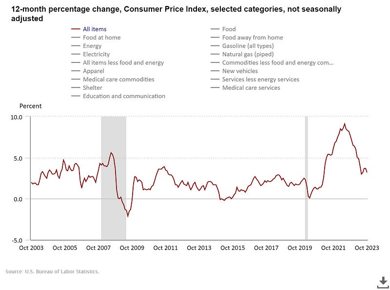 Breaking down the numbers, the Total CPI remained unchanged month-over-month, coming in at 3.2% year-over-year, a dip from 3.7% in September. Core CPI, excluding food and energy, showed a slight increase, up 0.2% month-over-month and 4.0% year-over-year.