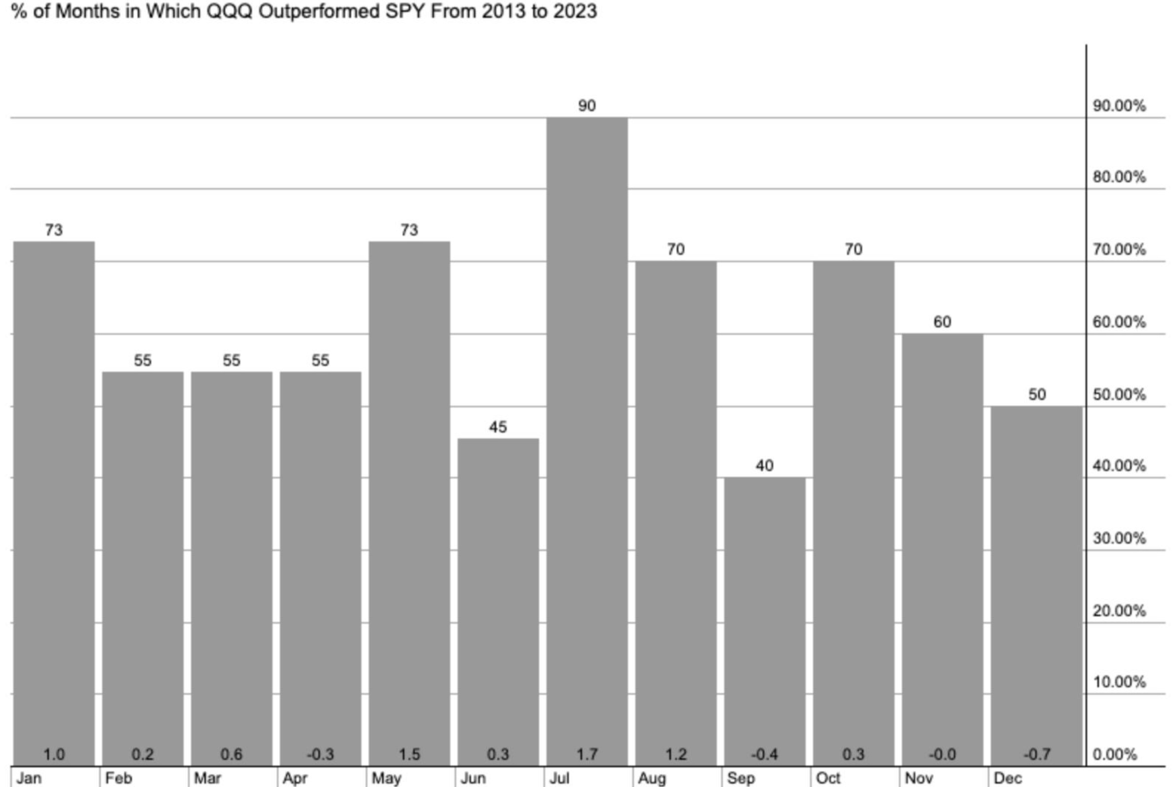 Checking out normal behavior for July & August, we see that technology stocks usually have their best period in relation with the rest of the market.