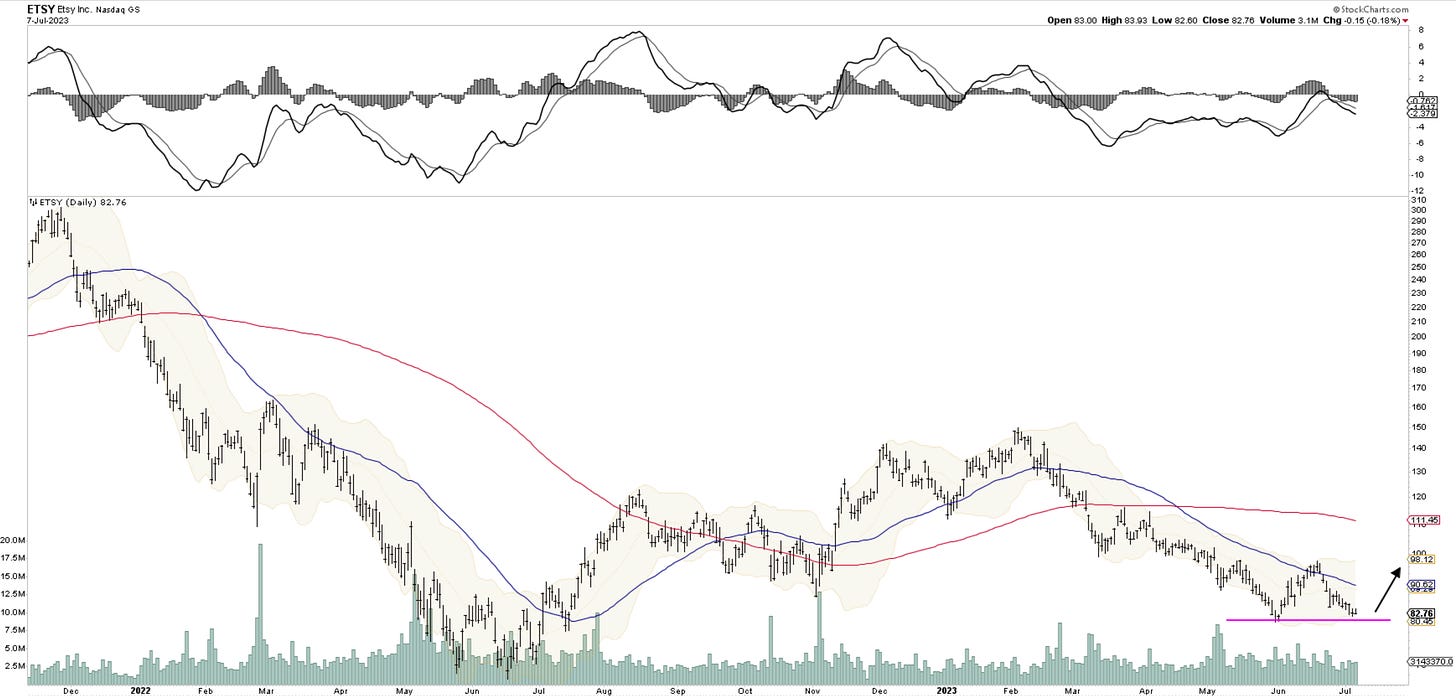 For this reason, we might be able to catch a reversal in a name like ETSY 0.00%↑ who may also benefit by early holiday retail momentum (stop levels easily recognizable on chart below).