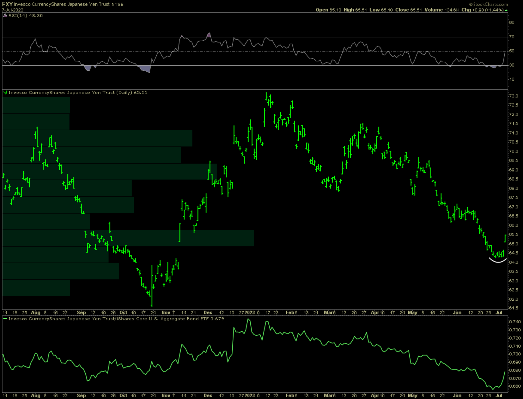 In the advent that more late cycle behavior returns due to real interest rates going higher, the weakness we’ve seen recently in bonds might spill over to continued weakness in other areas. Given serious strains caused from Federal Reserve monetary tightening, there were early signs of investors beginning to want safety in owning Japanese Yen. If job strength turns rolls into employment weakness, it be a difficult for lawmakers and the Fed to stop the pendulum before other damage is done.