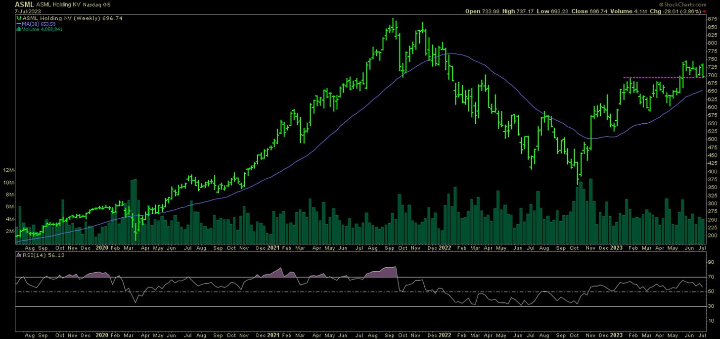 The SMH still looks to be in a healthy consolidation phase this week, with leaders such as NVDA and TSM gaining. The third horseman ASML 0.00%↑ however was not nearly as strong, possible suffering more from export restrictions to China. Biased by recent events though, this could be either a great buying opportunity or a bellwether of where this may take the broader industry.